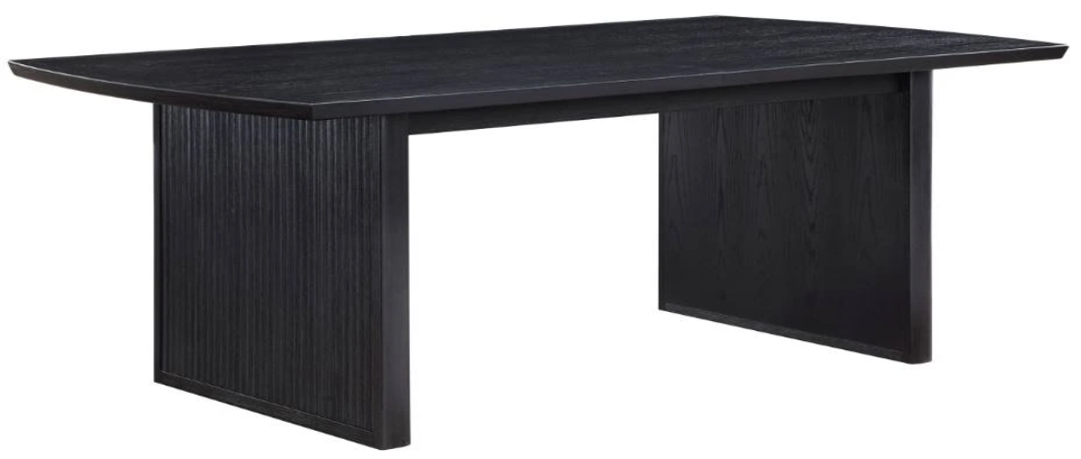 Contemporary style incorporates linear silhouettes in this dining table with a slightly curved chamfered top