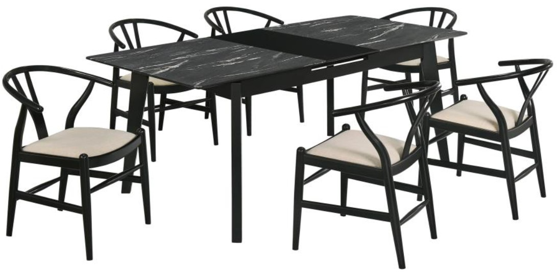 Includes: One (1) dining table and four (6) side chairs