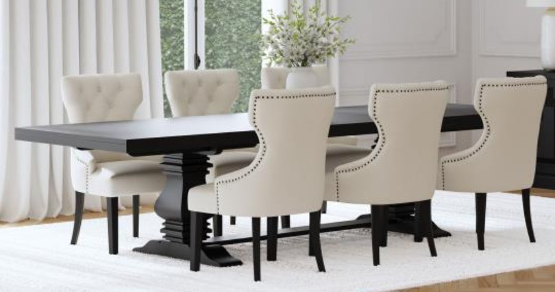 Includes: One (1) dining table and six (6) side chairs