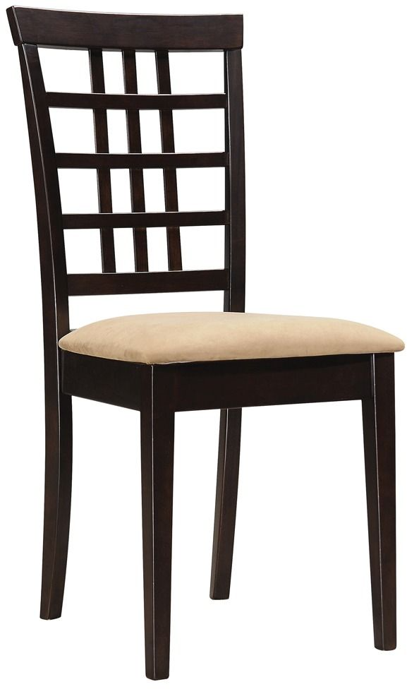 A variation on traditional decor, this cappuccino dining chair has a stunning openwork pattern. Featuring geometric shapes, the seat back displays framed squares and rectangles.Read More
