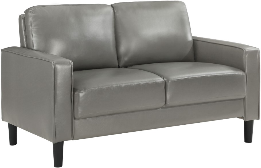 A compact profile makes this modern loveseat the perfect choice to add seating in a living room or den. It’s a structured silhouette complete with track arms. Faux leather upholstery is supple and smooth, offering contemporary style and sophistication that impresses without overwhelming.Read More